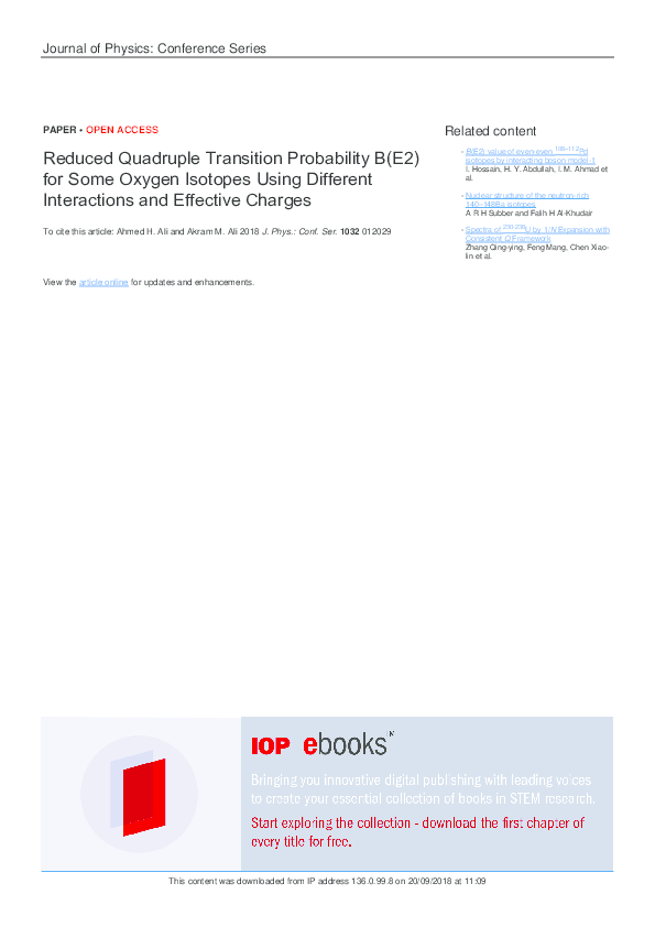 Pdf Reduced Quadruple Transition Probability B E2 For Some Oxygen Isotopes Using Different Interactions And Effective Charges Asst Prof Dr Ahmed H Ali And Akram M O H A M M E D D Ali Academia Edu
